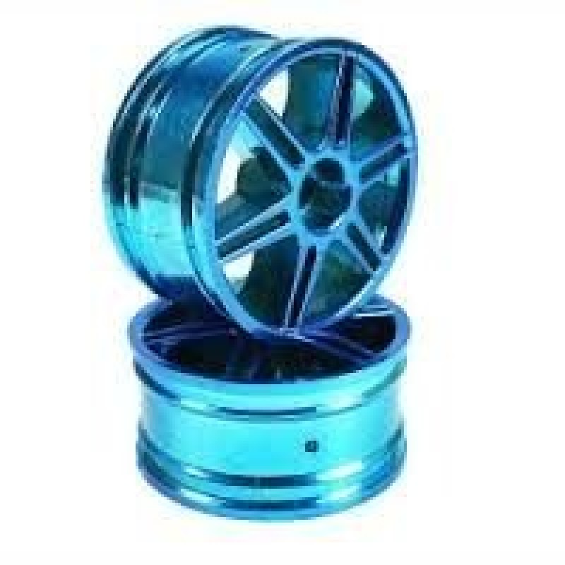 Blue 6 Curved dual-spoke Painted Wheels + Tires (1/10 Car)